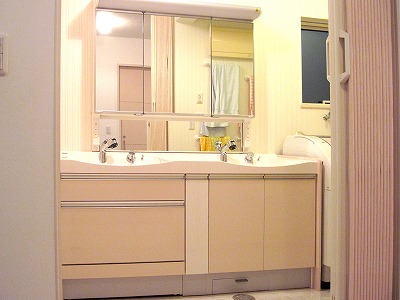 ツインボールの化粧台にしたいとのご要望でしたので、設置スペースを確保するために、間取りを変更して脱衣場と洗面所をつなげて部屋を広くしました。