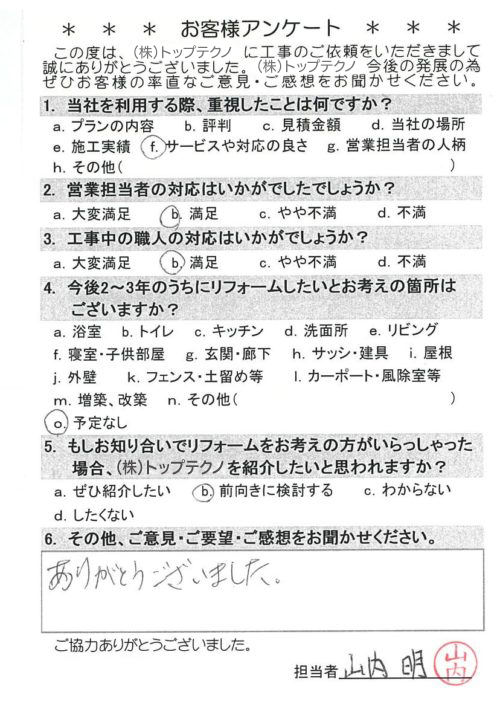 こちらこそ、ご依頼いただきまして誠にありがとうございました。