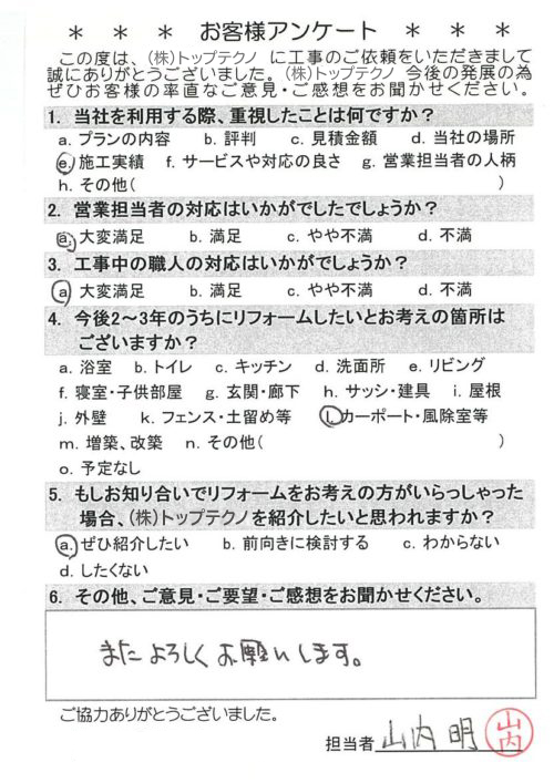 お客様アンケートへのご回答、誠にありがとうございます。
