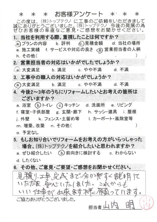 見積り工事完成まで分かりやすく説明していただき安心いたしました。