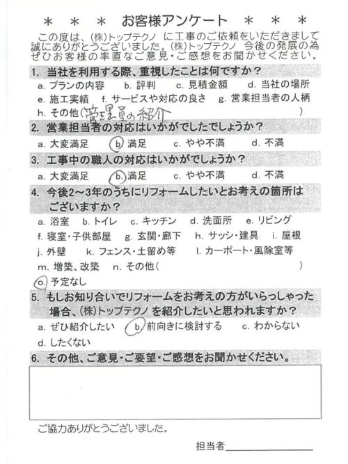 お客様アンケートへのご回答、誠にありがとうございます。