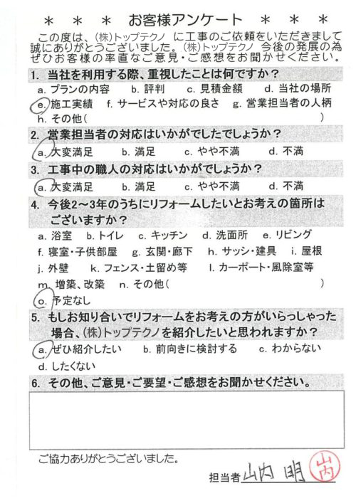 お客様アンケートへのご回答、誠にありがとうございます。
