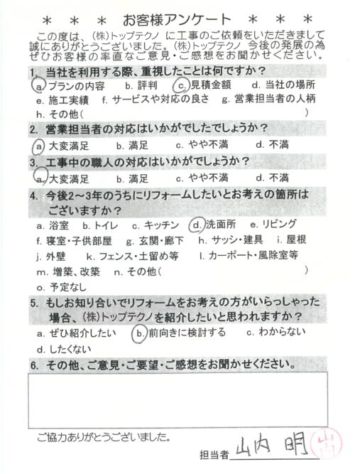 お客様アンケートへのご回答、誠にありがとうございます。