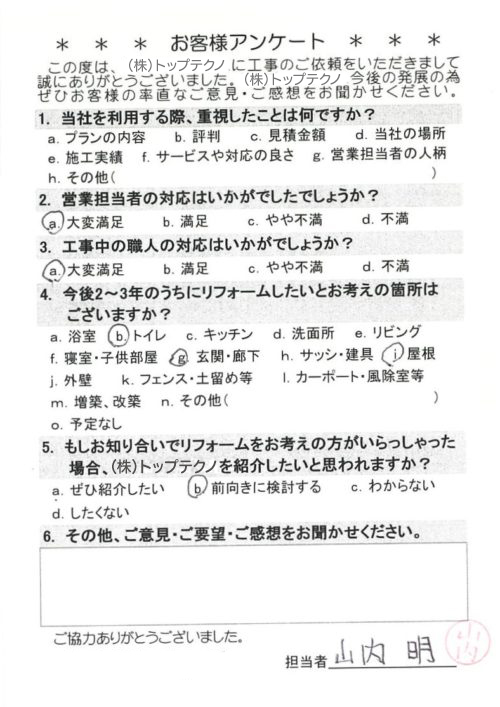お客様アンケートへのご回答、誠にありがとうございます。