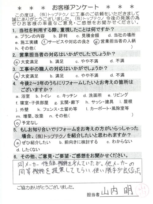 お客様アンケートへのご回答、誠にありがとうございます。