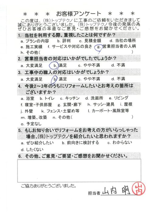お客様アンケートへのご回答、誠にありがとうございます。
