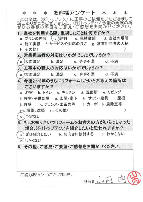 お客様アンケートへのご回答、誠にありがとうございます。