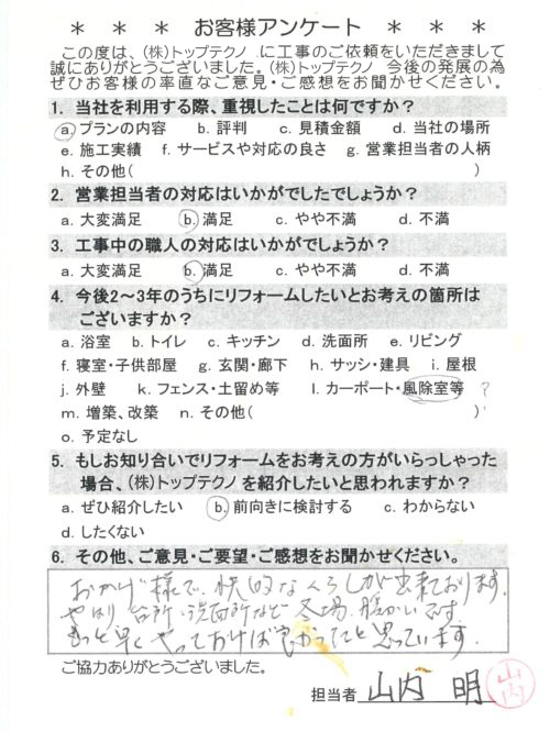 快適なくらしができているとのこと、大変嬉しい限りです。