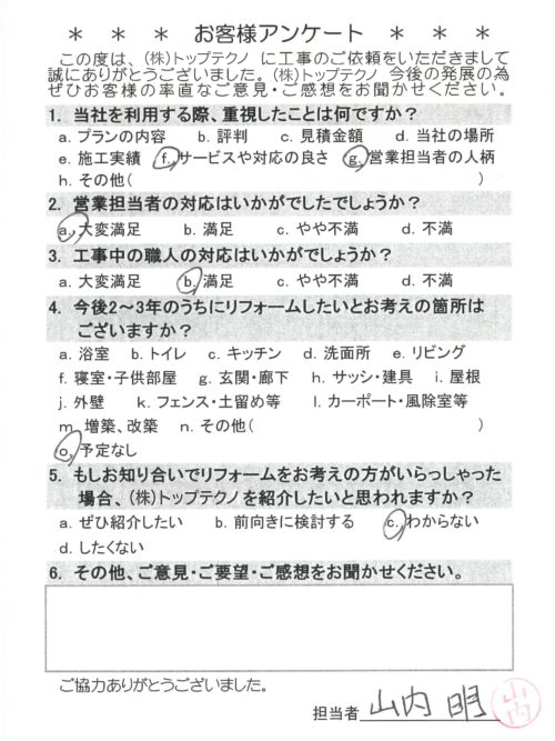 お客様アンケートへのご回答、誠にありがとうございます。