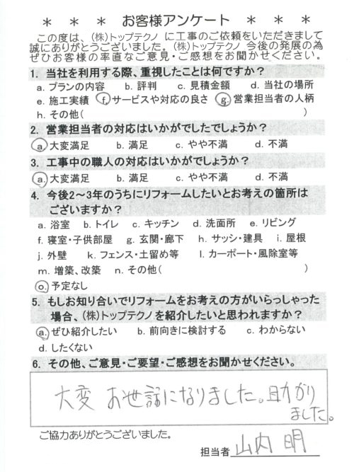 大変お世話になりました。助かりました。
